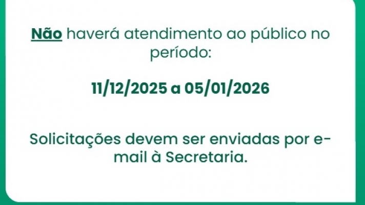 Informamos que no dia 19/01/2026 não haverá atendimento ao público na Secretaria do PPGMQ.